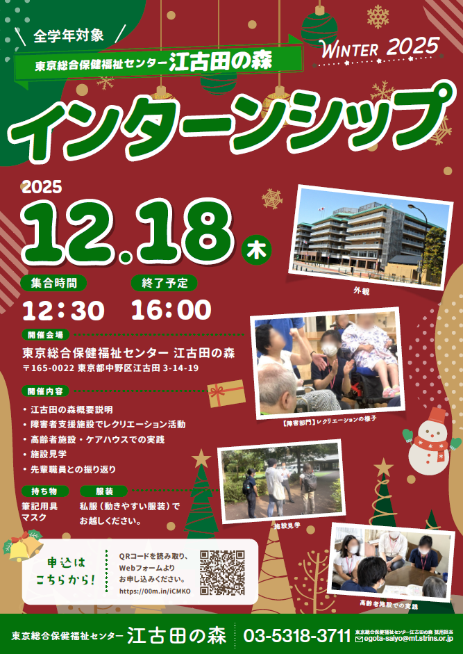 江古田の森では、12月18日(木)にインターンシップ Winterを開催いたします!